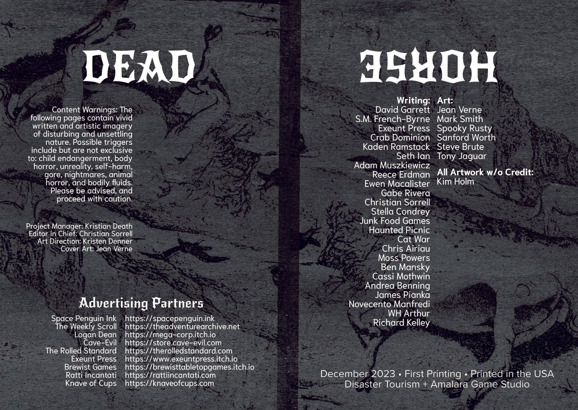 A compendium of short stores, essays, and game content on the theme of unsettling horror.